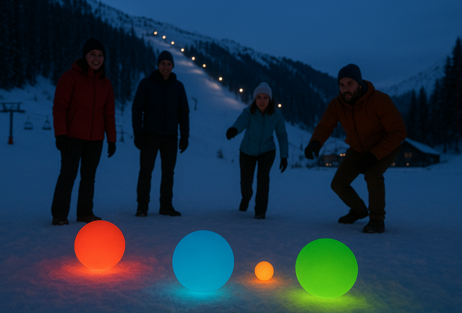 Découvrez la pétanque version neige ! Des boules lumineuses pour des parties fun et inédites au cœur des montagnes. À essayer entre amis ou en famille.