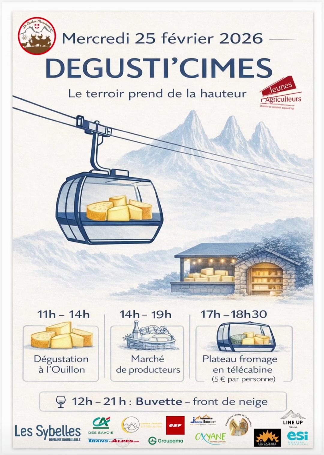 The Young Farmers of Maurienne are organising a day dedicated to Savoie cheeses: free tasting at L'Ouillon, farmers' market in the afternoon, followed by aperitif platters and a cable car ride with refreshments on the snow front.