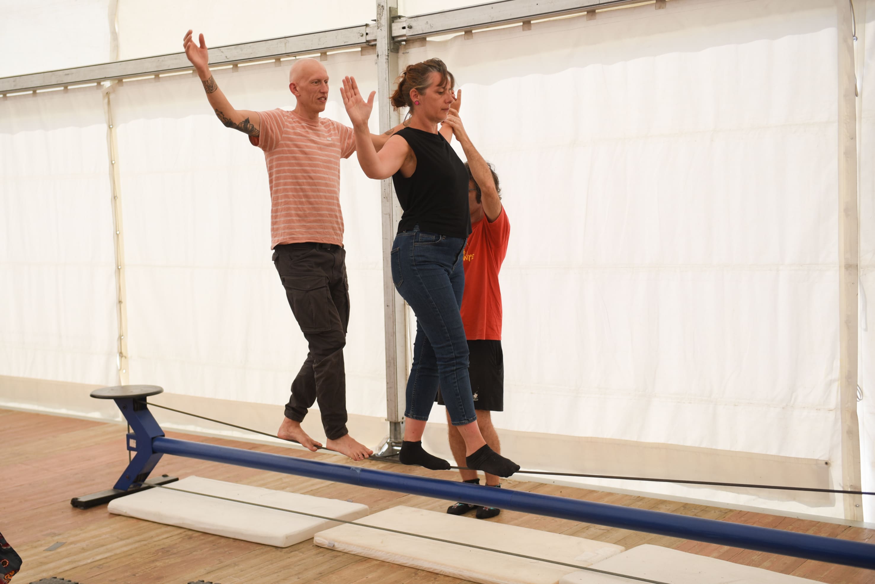 Venez découvrir l’équilibre sur fil ! Marches avant et arrière, courses, demi-tours, tours complets, danses, rythmes et sauts seront travaillés. Avec l'objectif de transmettre une méthode de travail, donner des informations et des outils aux personnes intéressées.