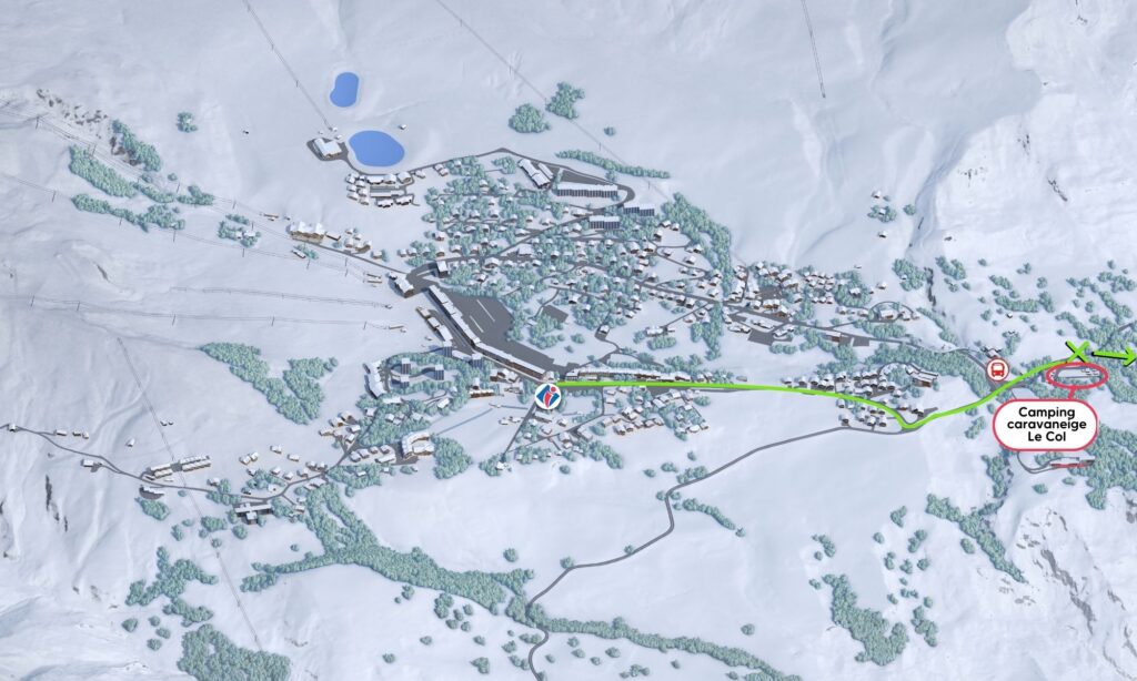 Het beginpunt van het Sentier des 3 Croix ligt vlakbij camping-caravaneige Le Col. Om er te komen, gaat u naar het kruispunt Le Corbier / Saint-Jean-de-Maurienne bij de ingang van het resort en slaat u linksaf: de camping ligt iets verderop, aan de rechterkant.