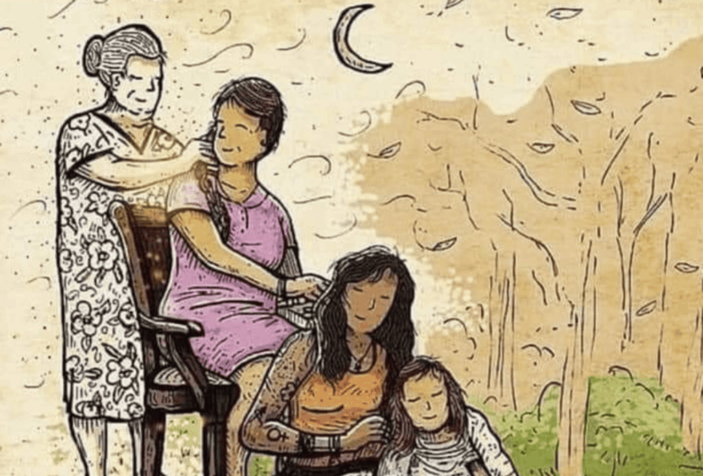 Laat u leiden door dit moment van zachtheid tussen vrouwen, gekenmerkt door gesprekken, introspectie en zachte bewegingen. Een ruimte van zusterlijke steun die het hart voedt en de geest verlicht.